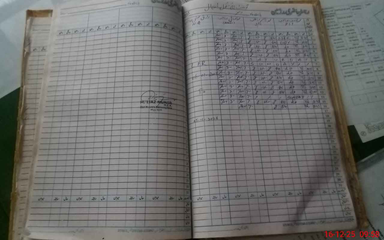 | CNIC | Full Name | Designation | R/C | Absence During Last Calender Month |