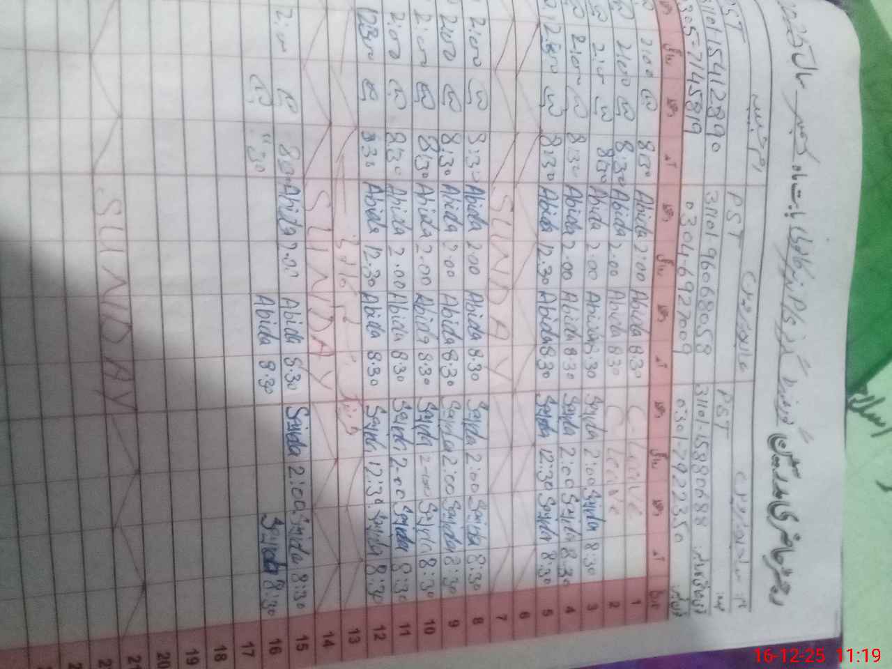 | Name: SA**** PE**** Designation: (School Headmaster's/Headmistress's) PST Phone/Cell Number: 03**** |