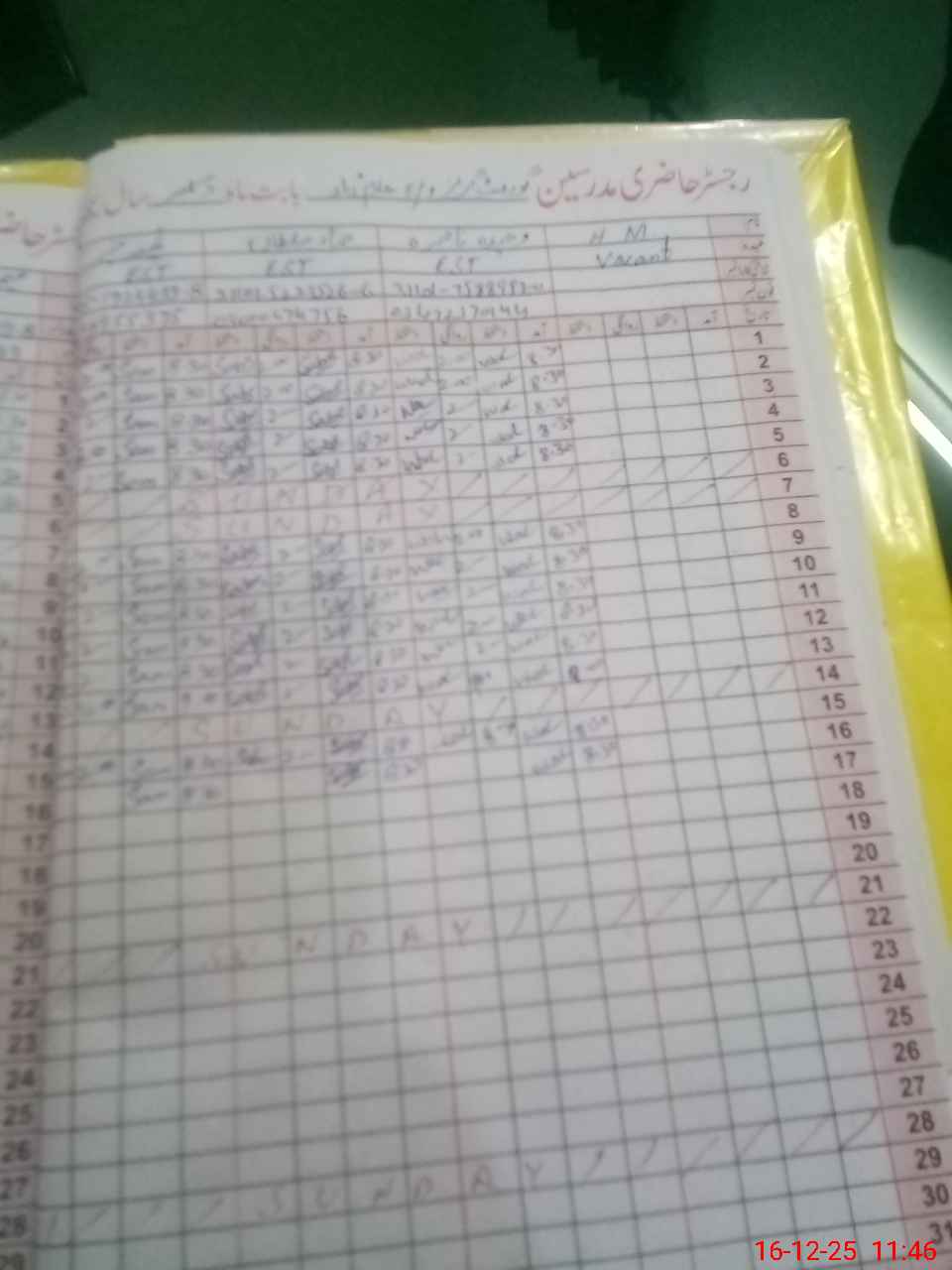 | CNIC | Full Name | Designation | R/C | Absence During Last Calender Month |