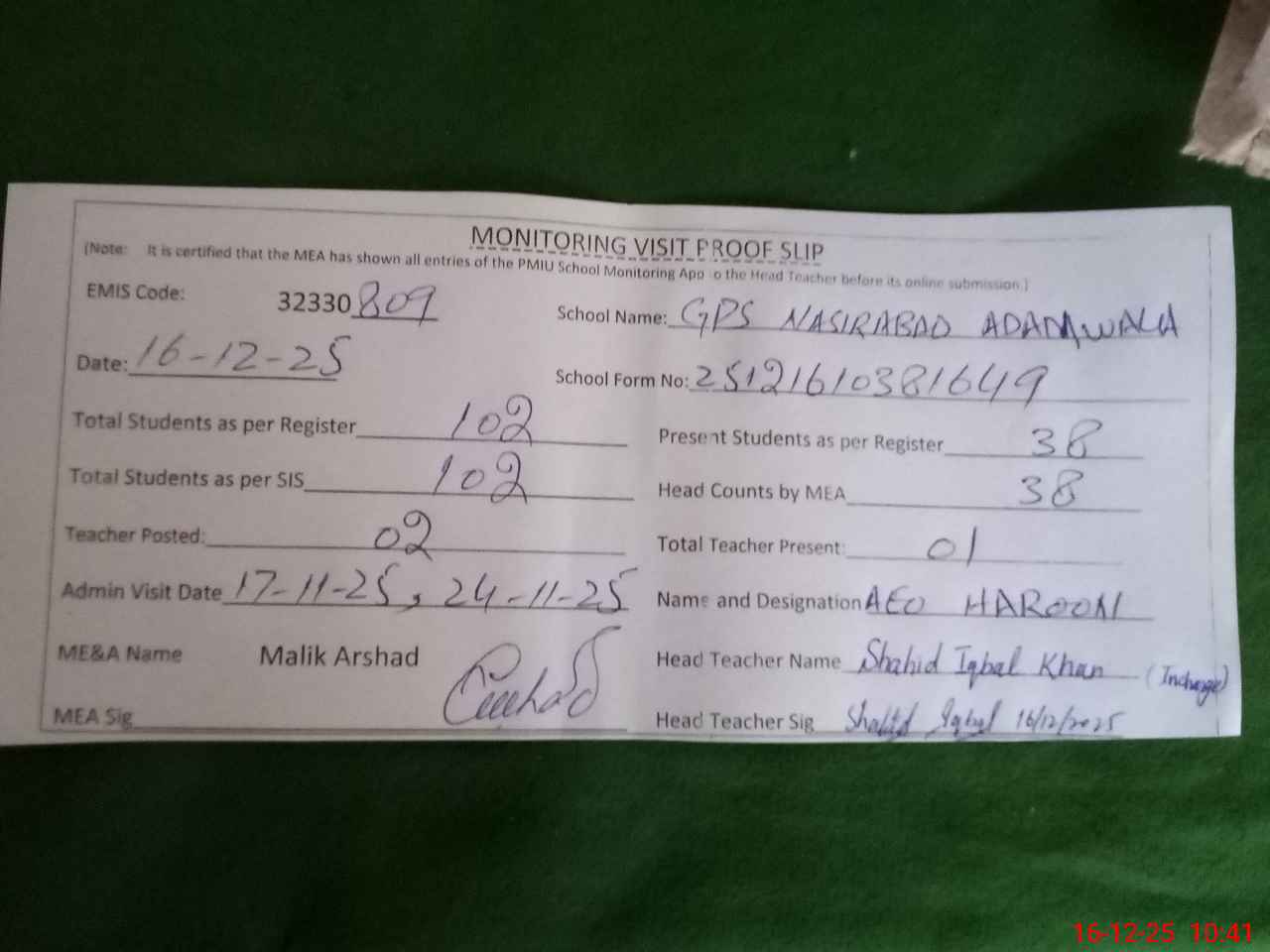 | EMIS Code: 32330809 | Name of School: GPS NASIR ABAD (ADAM WALA) | |||