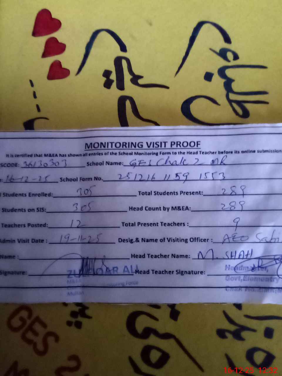 | EMIS Code: 36130303 | Name of School: GES CHAK NO 2 MR P/O MUKHDOOM RASHID | |||