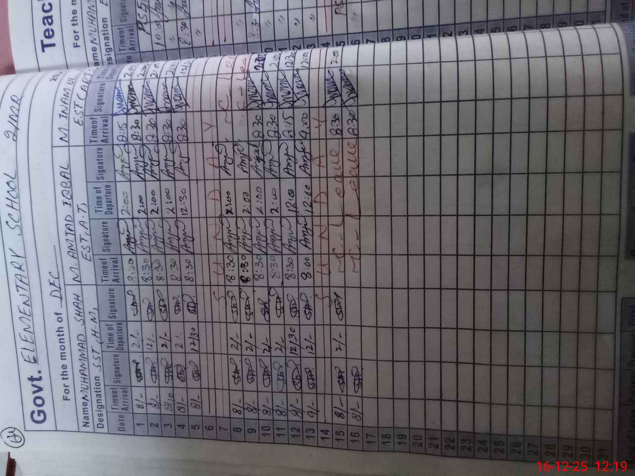| CNIC | Full Name | Designation | R/C | Absence During Last Calender Month |