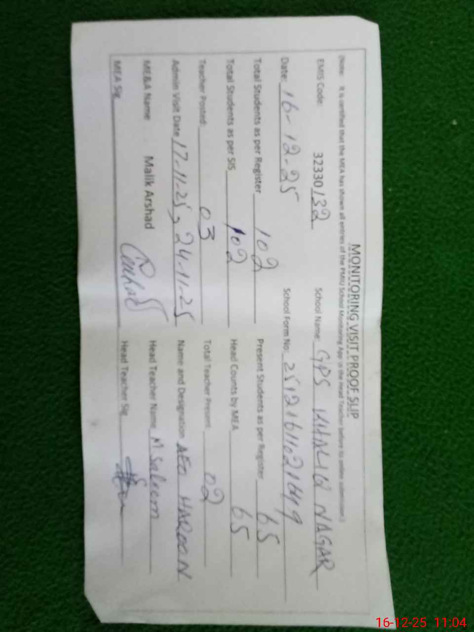 | EMIS Code: 32330132 | Name of School: GPS KHALIQ NAGGAR | |||
