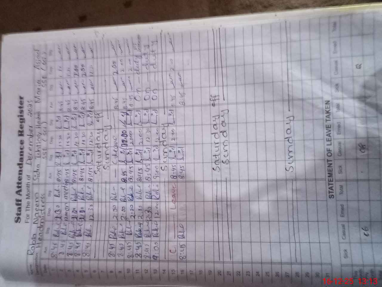 | Remarks (Use Separate Page if Required): Approved leaves of teaching staff was not shown due to internet not available | |||||