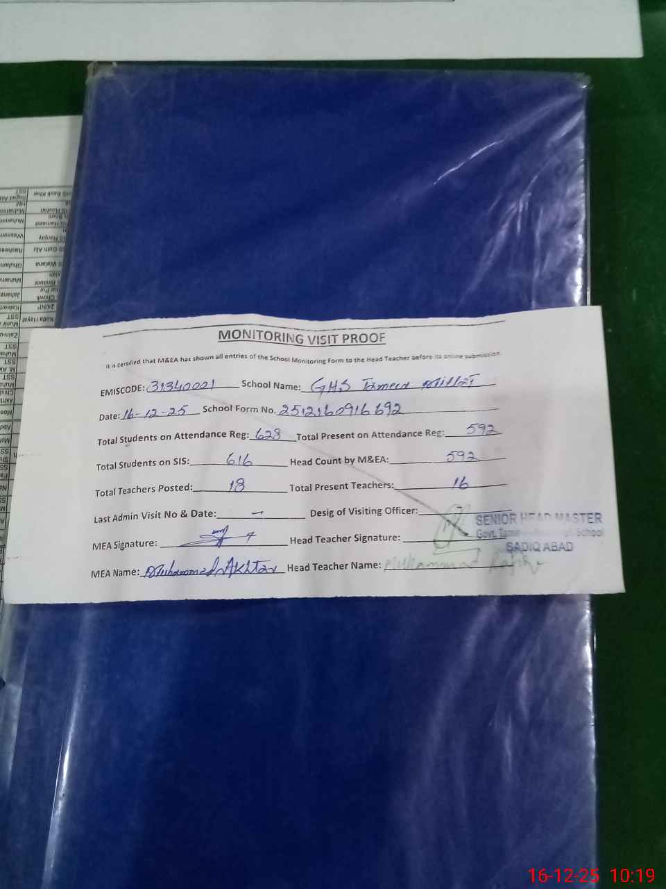 | EMIS Code: 31340001 | Name of School: GHS TAMEER MILLAT | |||
