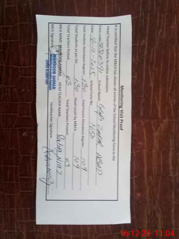 | EMIS Code: 32320391 | Name of School: GGPS ZAFFAR ABAD | |||