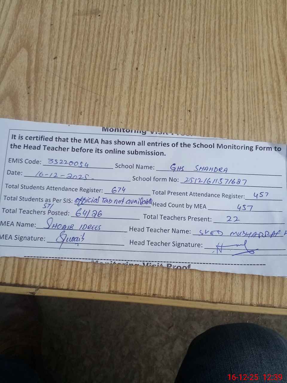 | EMIS Code: 35220054 | Name of School: GHS SHAHDARA | |||
