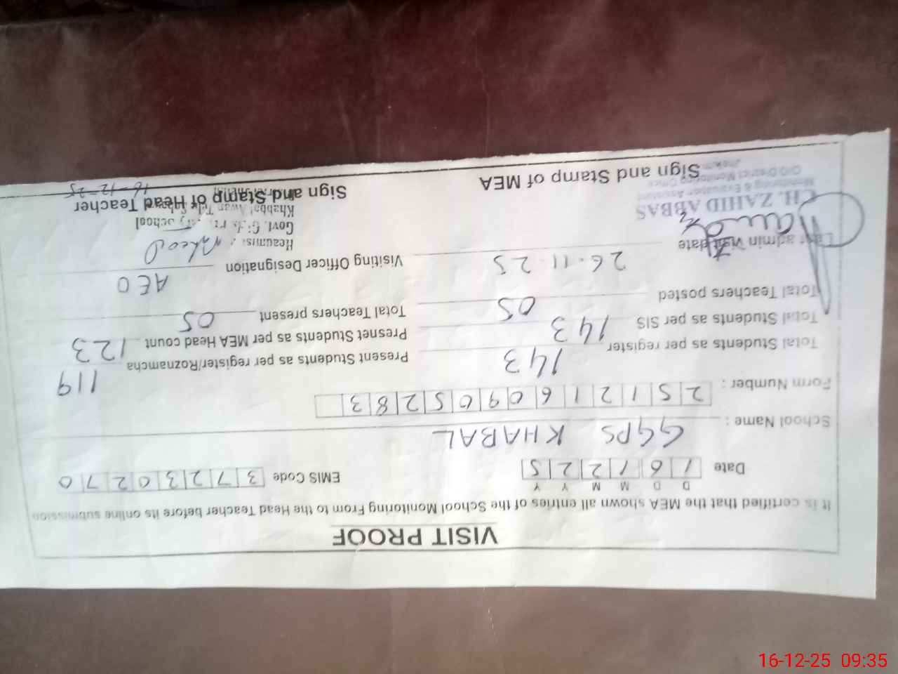 | EMIS Code: 37230270 | Name of School: GGPS KHABAL | |||