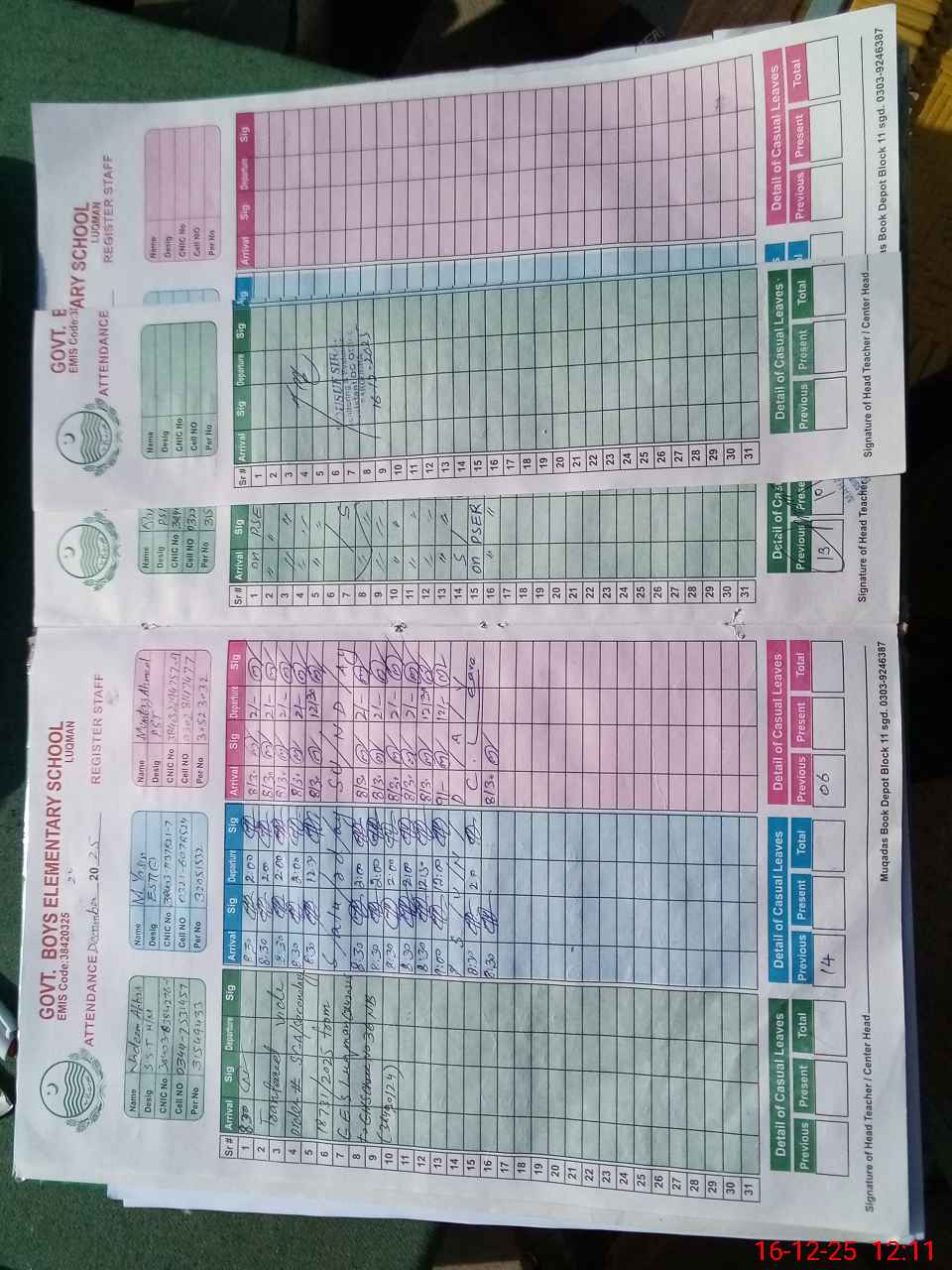 | CNIC | Full Name | Designation | R/C | Absence During Last Calender Month |