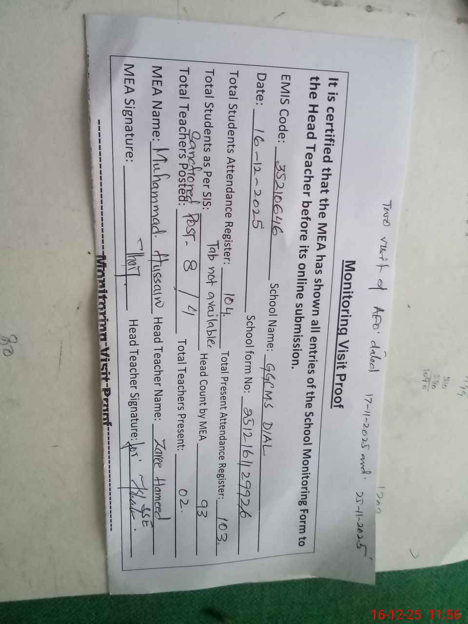 | EMIS Code: 35210646 | Name of School: GGCMS DAYAL | |||
