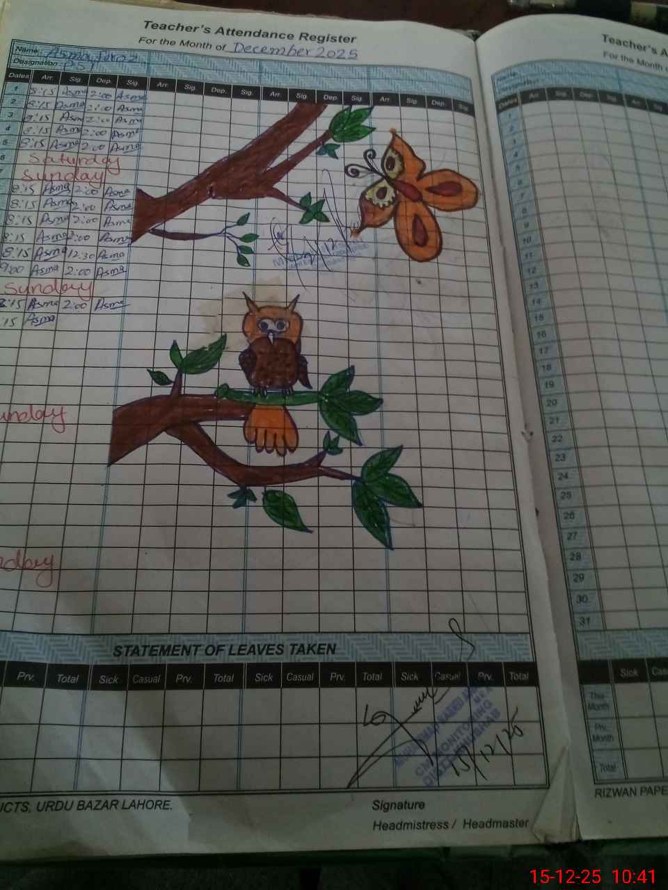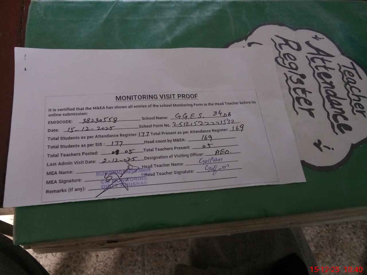 | Remarks (Use Separate Page if Required): Students on SIS QTY 177 Last admin visit On 02 December 2025 by AEO | |||||