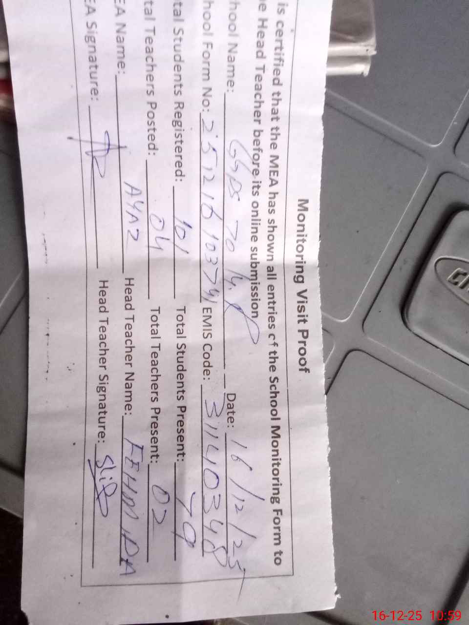 | EMIS Code: 31140348 | Name of School: GGPS CHAK NO 70/4-R | |||