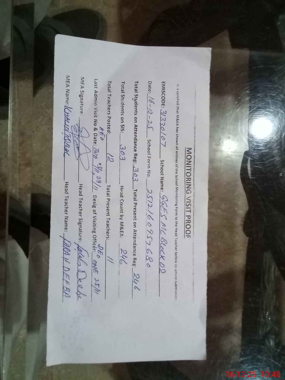 | Certified that this School was Inspected by the Undersigned MEA/DMO Today and the Information Stated Above is as Per Record. | |||||