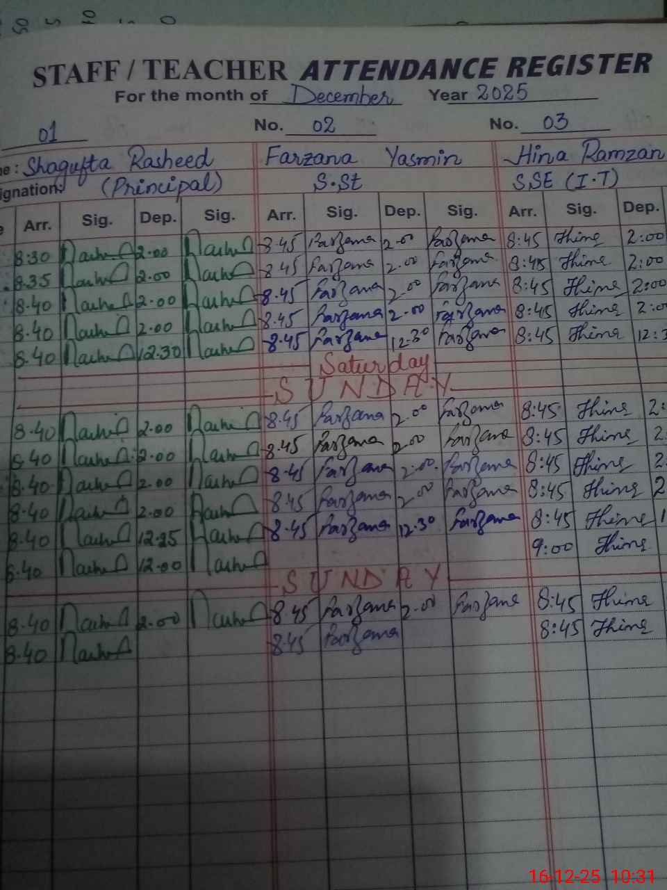 | CNIC | Full Name | Designation | R/C | Absence During Last Calender Month |