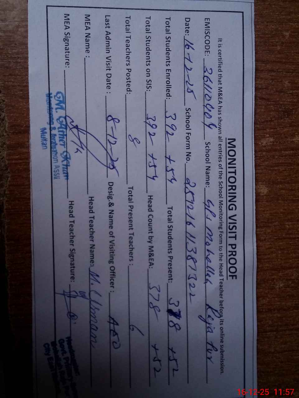 | EMIS Code: 36110404 | Name of School: GPS MOHALLAH RAJAPUR | |||
