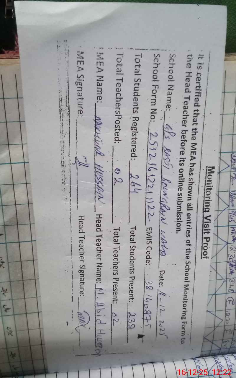 | Certified that this School was Inspected by the Undersigned MEA/DMO Today and the Information Stated Above is as Per Record. | |||||
