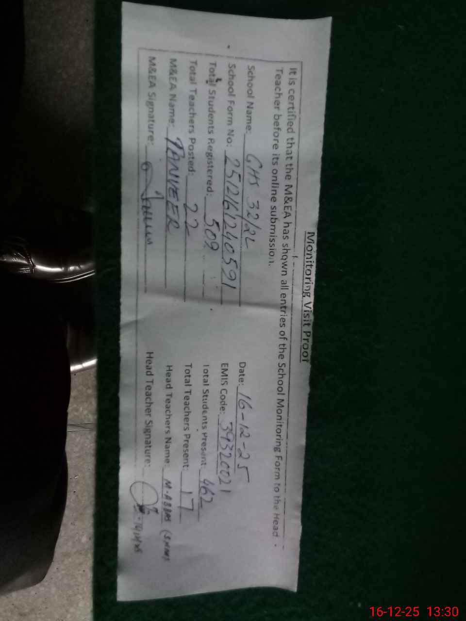 | EMIS Code: 39320021 | Name of School: GHS CHAK NO.32/2-L | |||