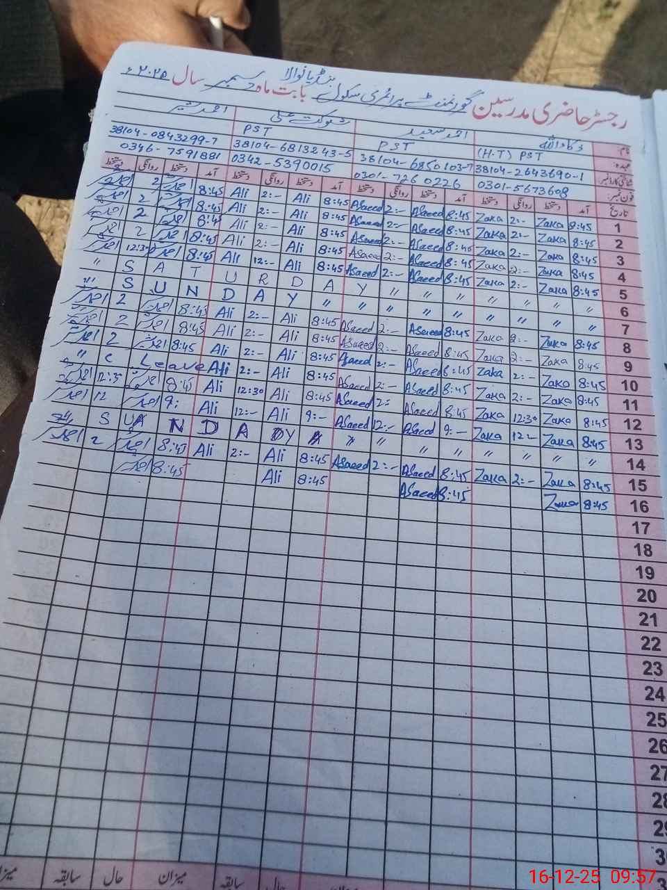 | Name: Za**** Ul**** Designation: (School Headmaster's/Headmistress's) PTC/JV Phone/Cell Number: 03**** |