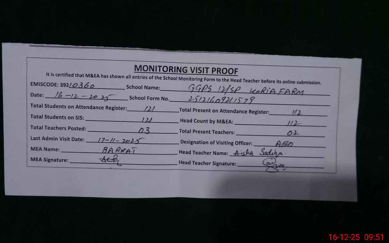 | EMIS Code: 39210360 | Name of School: GGPS 12 SP | |||