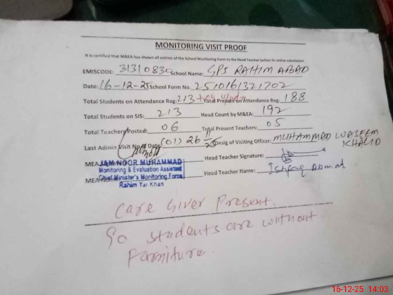| EMIS Code: 31310830 | Name of School: GPS RAHIM ABAD | |||
