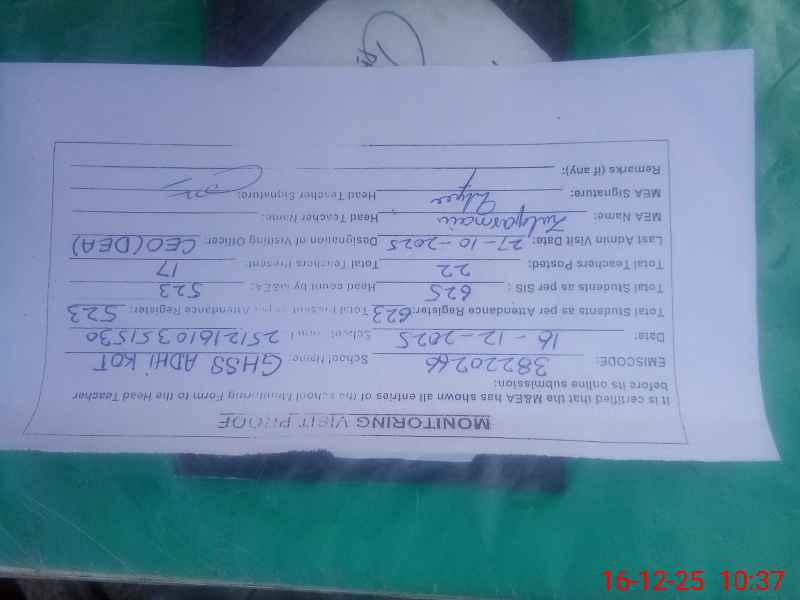 | EMIS Code: 38220266 | Name of School: GHSS ADHI KOT | |||