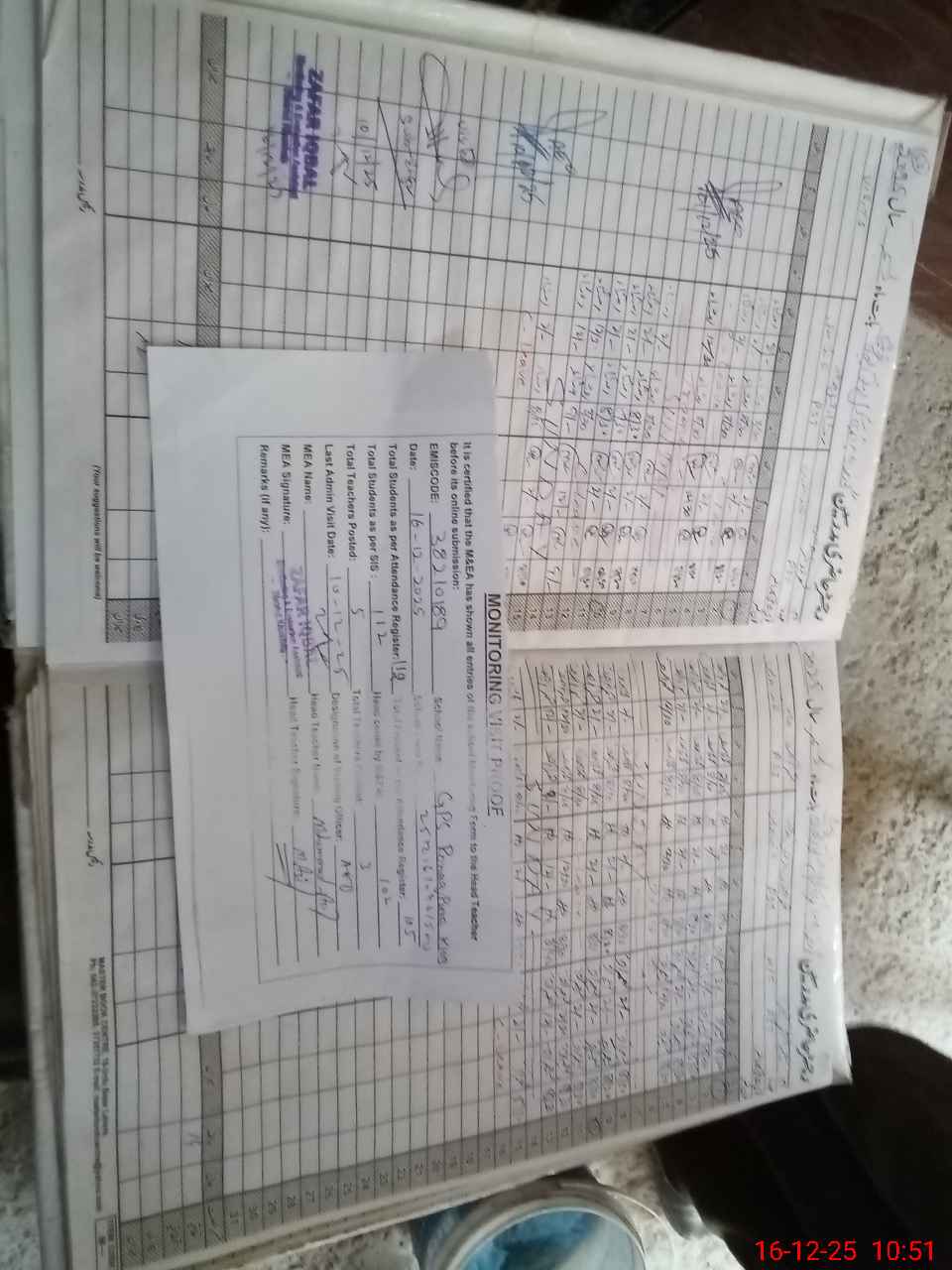 | Attendance Register | Head Teacher | MEA with School | Visit Proof |
