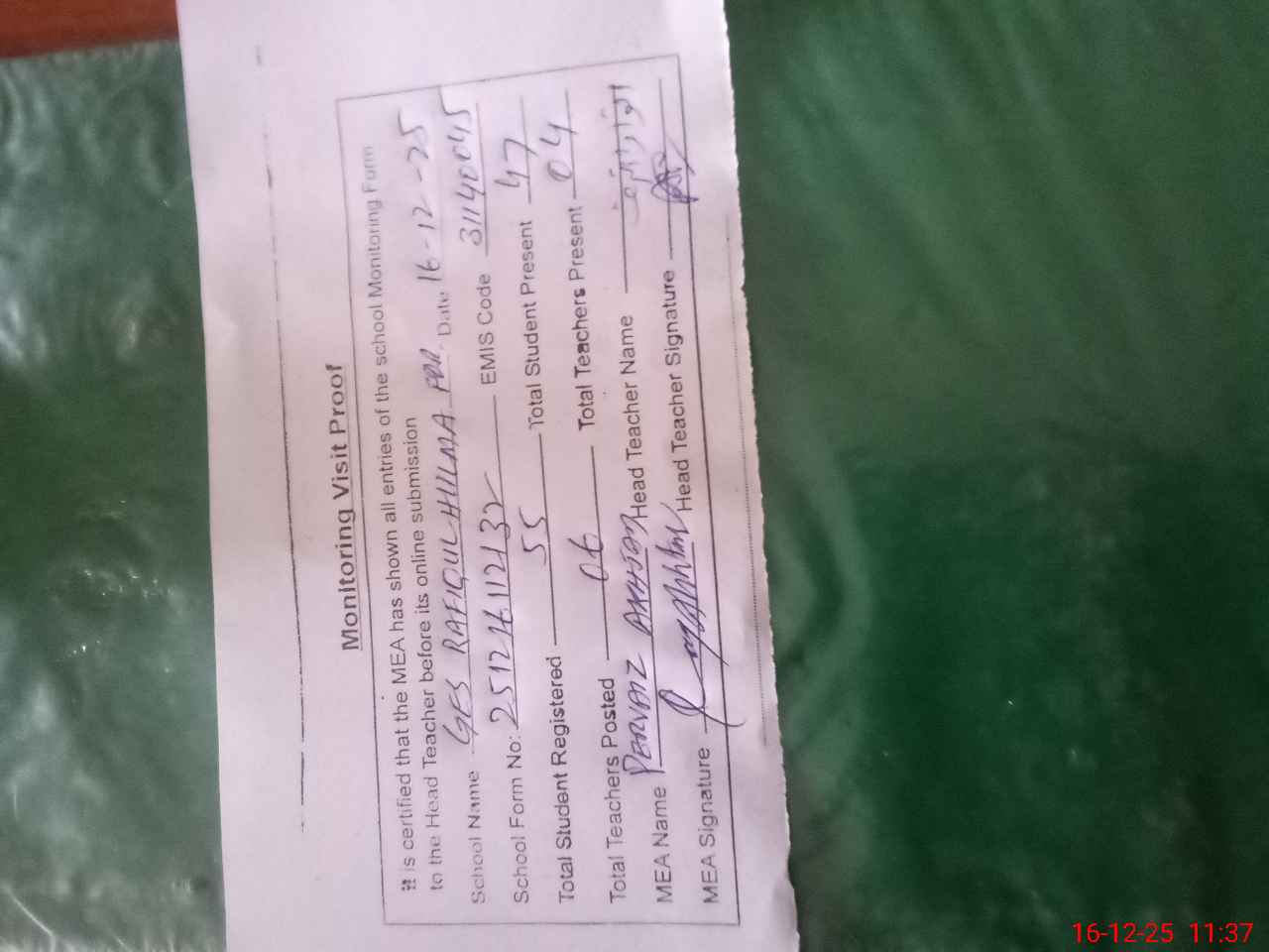| EMIS Code: 31140045 | Name of School: GES RAFIQ-UL-HULMA FAQIR WALI | |||
