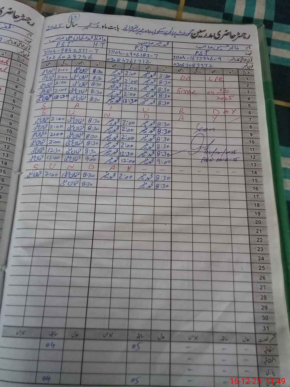 | Name: KH**** HU**** Designation: (School Headmaster's/Headmistress's) PTC Phone/Cell Number: 03**** |