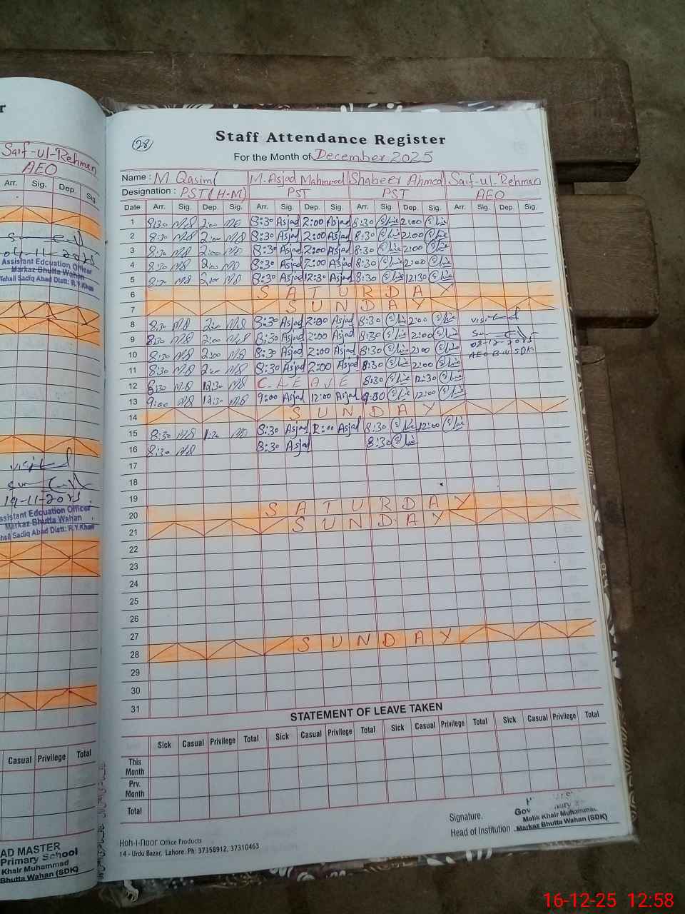 | Name: M.**** Designation: (School Headmaster's/Headmistress's) PST Phone/Cell Number: 03**** |