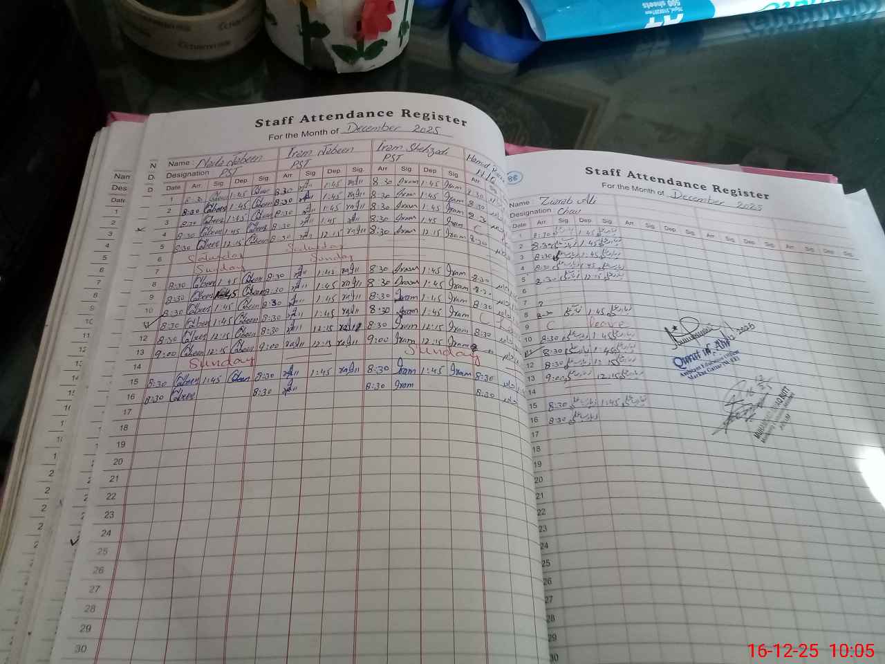 | CNIC | Full Name | Designation | R/C | Absence During Last Calender Month |