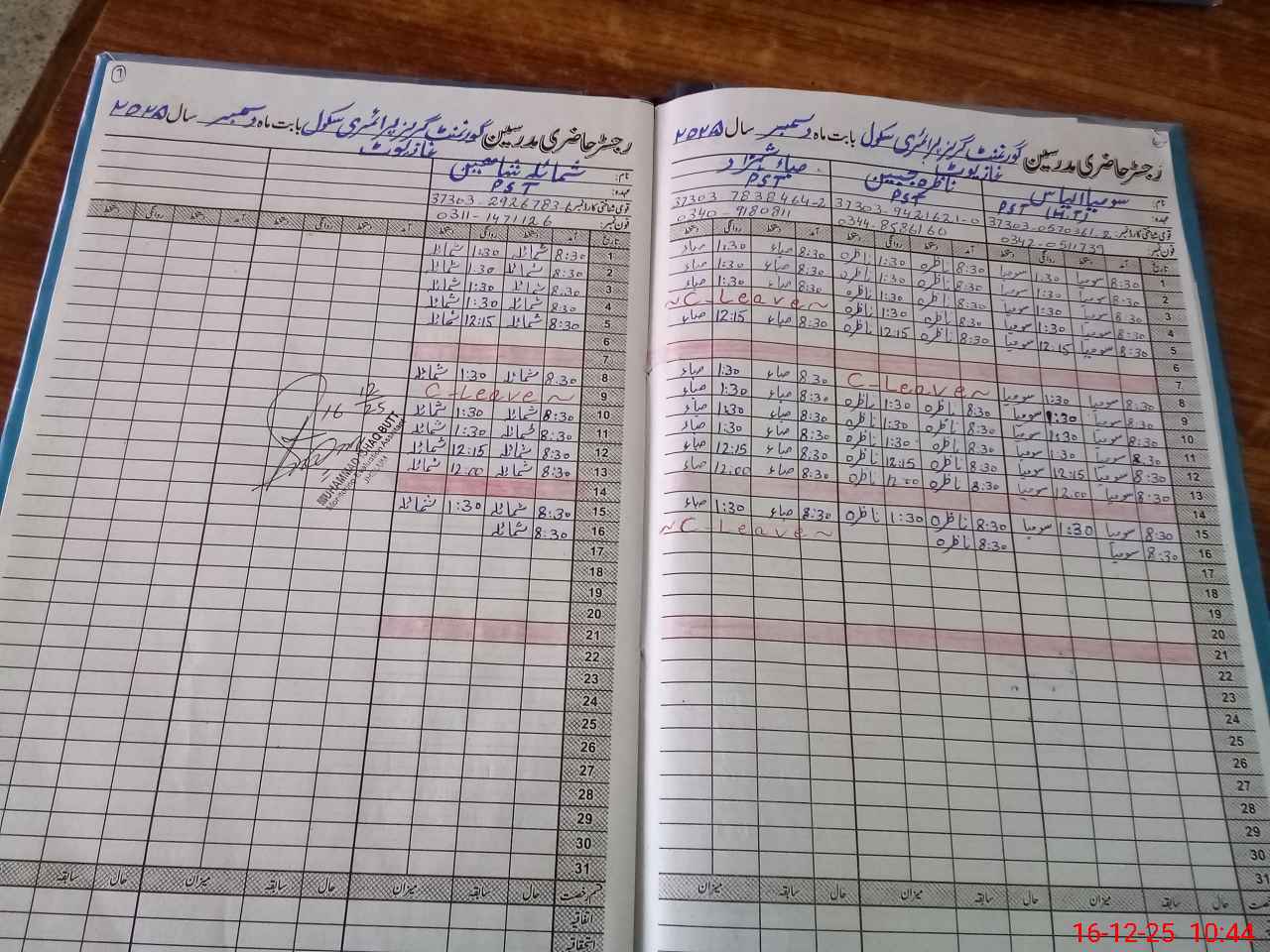 | CNIC | Full Name | Designation | R/C | Absence During Last Calender Month |