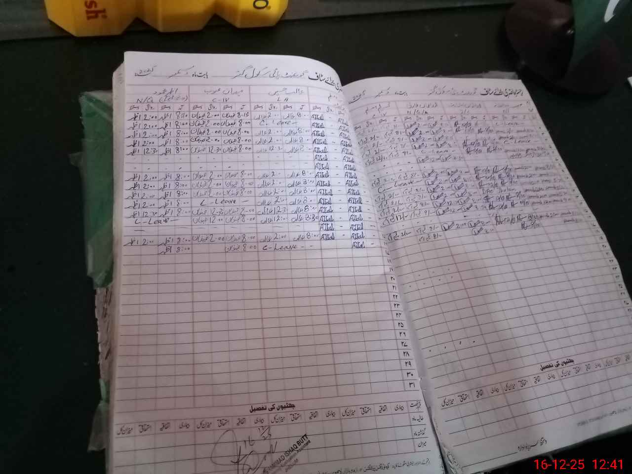 | CNIC | Full Name | Designation | R/C | Absence During Last Calender Month |