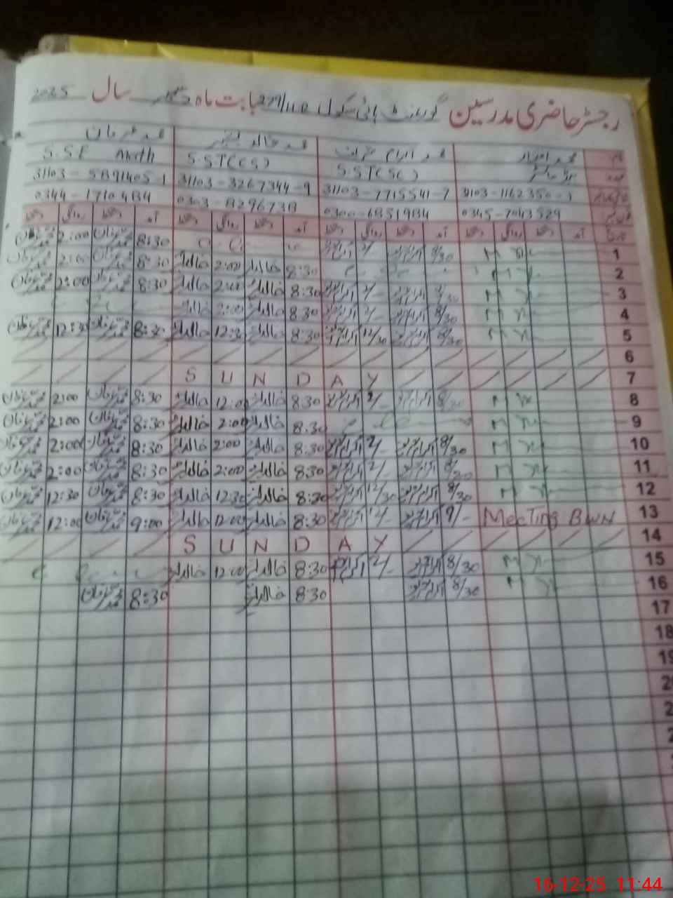 | CNIC | Full Name | Designation | R/C | Absence During Last Calender Month |