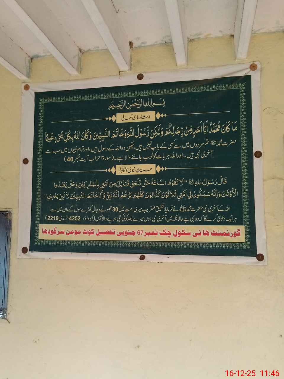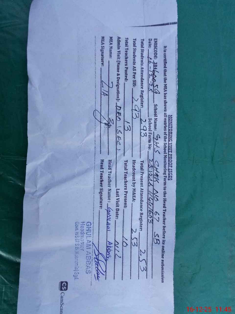 | EMIS Code: 38460059 | Name of School: GHS CHAK NO.67 SB | |||