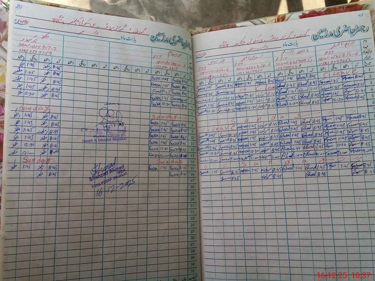 | Name: TA**** AK**** Designation: (School Headmaster's/Headmistress's) PTC/JV Phone/Cell Number: 03**** |