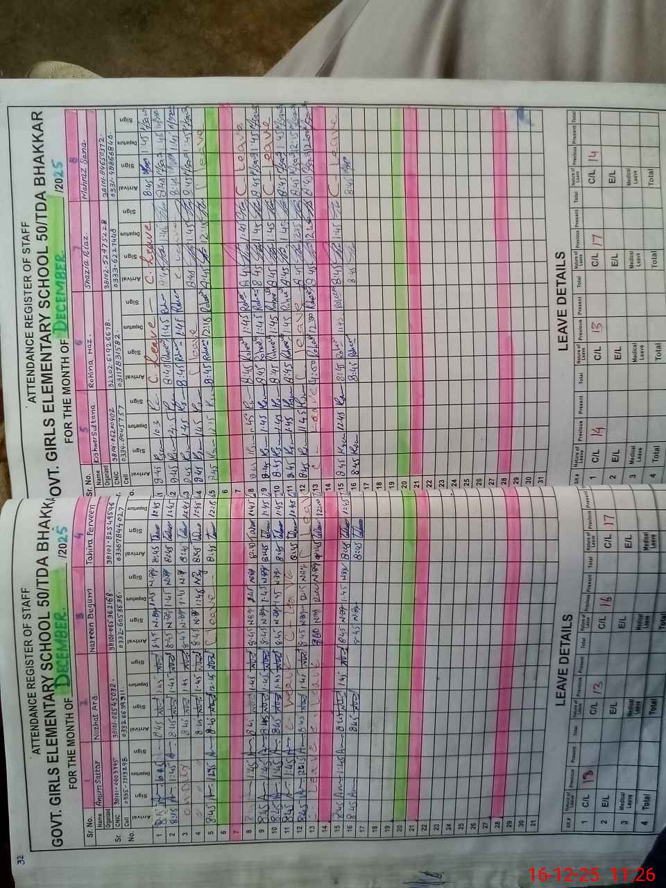 | CNIC | Full Name | Designation | R/C | Absence During Last Calender Month |