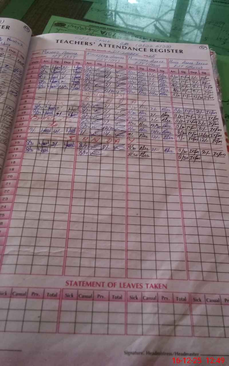 | Attendance Register | Head Teacher | MEA with School | Visit Proof |