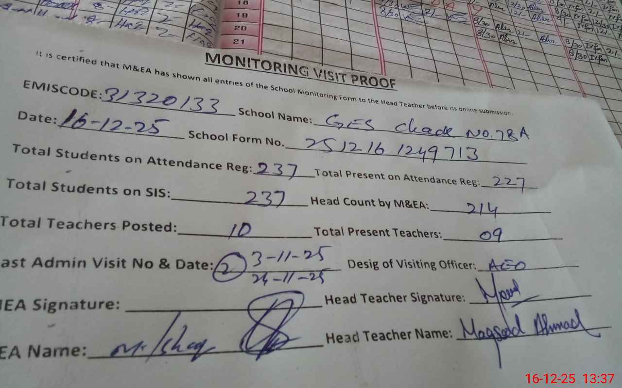 | EMIS Code: 31320133 | Name of School: GES CHAK 78/A | |||