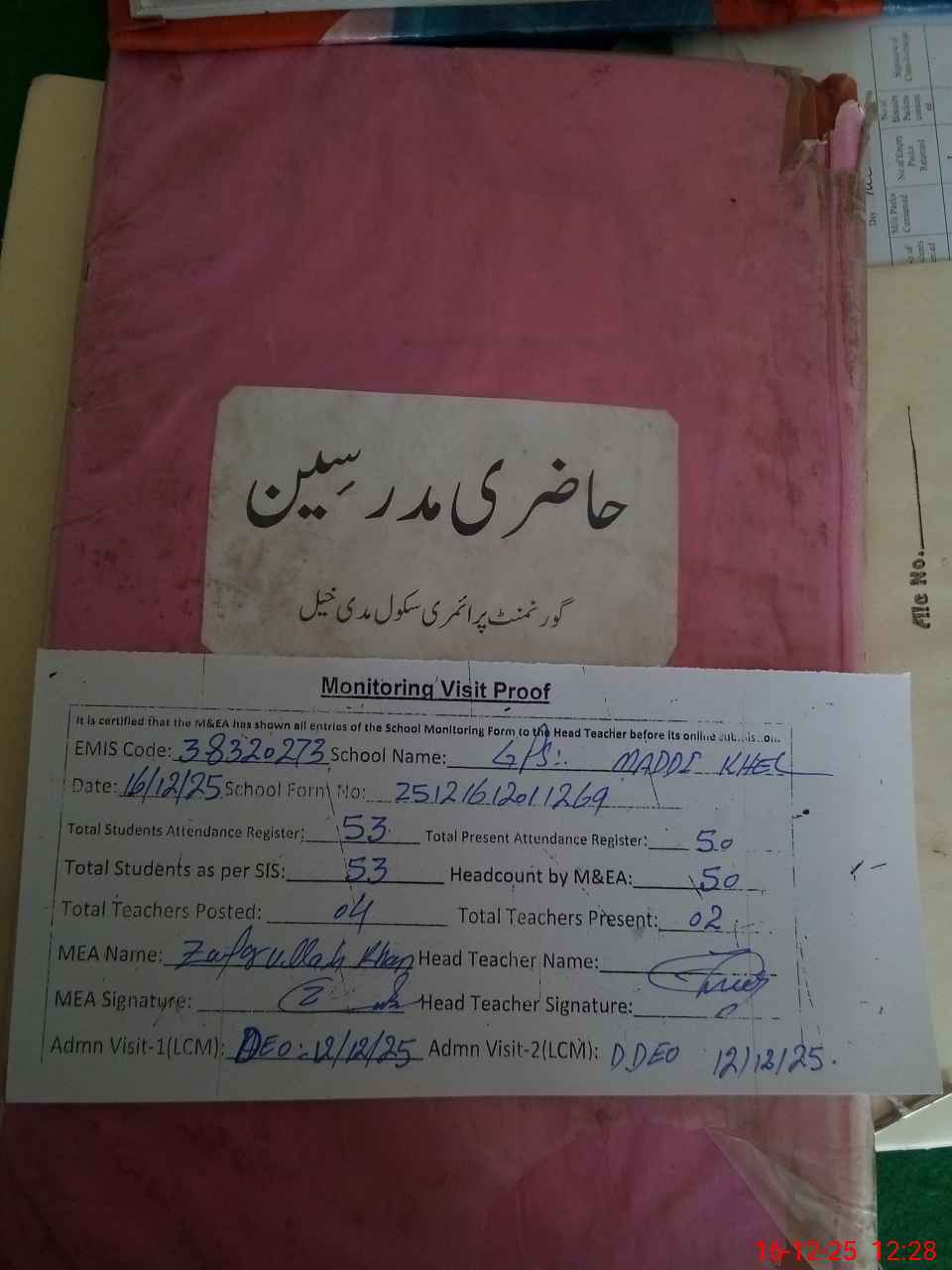 | EMIS Code: 38320273 | Name of School: GPS MADDI KHEL | |||