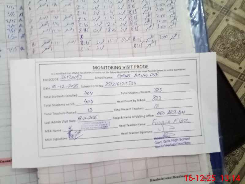| Attendance Register | Head Teacher | MEA with School | Visit Proof |