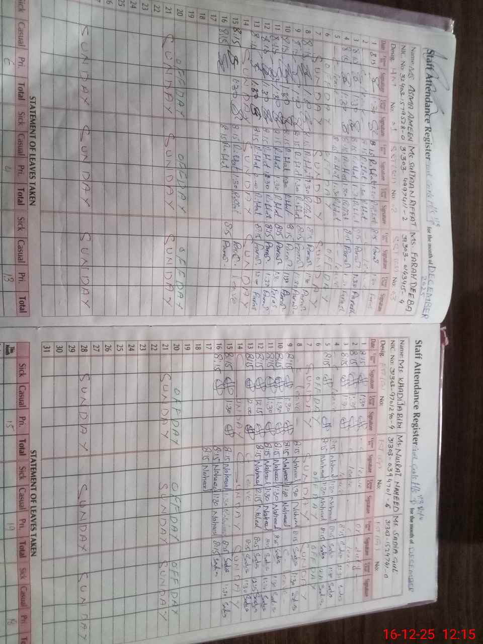 | 31**** | Su**** Bi**** | NAIB QASID | Regular | 2 | 0 | 0 | 0 | 0 | 0 | 0 | 0 | 2 | Casual |