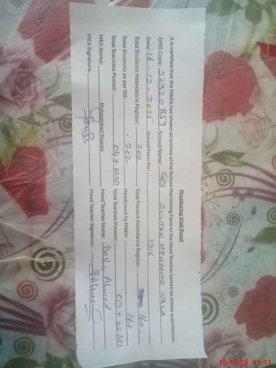 | EMIS Code: 32320857 | Name of School: GPS SULTAN MEHMOOD WALA | |||