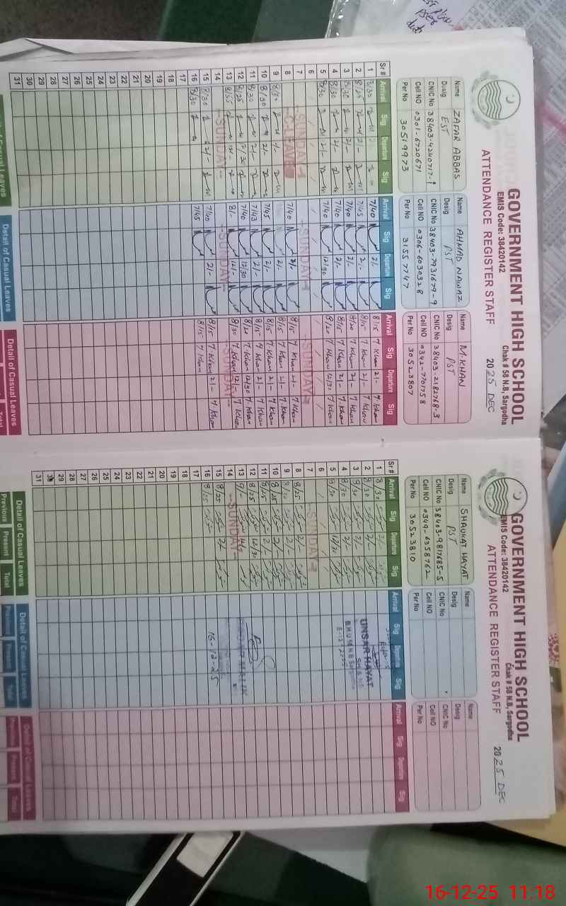 | EMIS Code: 38420142 | Name of School: GHS CHAK NO.58 NB | |||