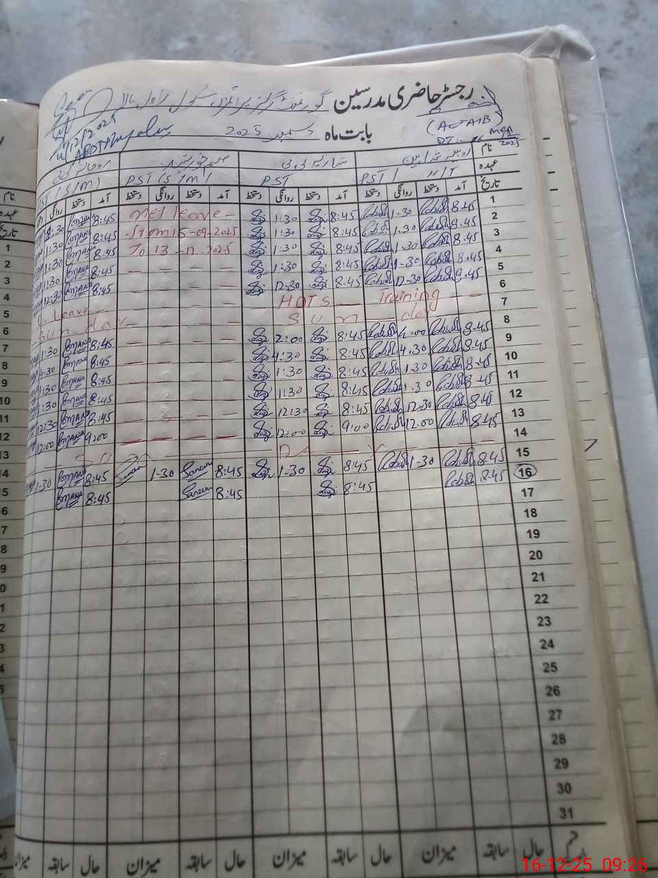 | Leave | Duty | Absent | Maternity | Medical | Ex- Pak |