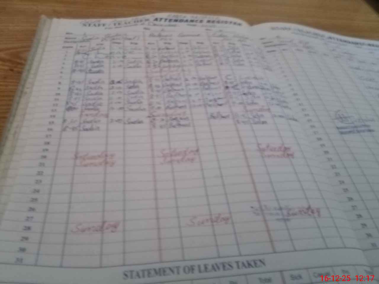 | Leave | Duty | Absent | Maternity | Medical | Ex- Pak |