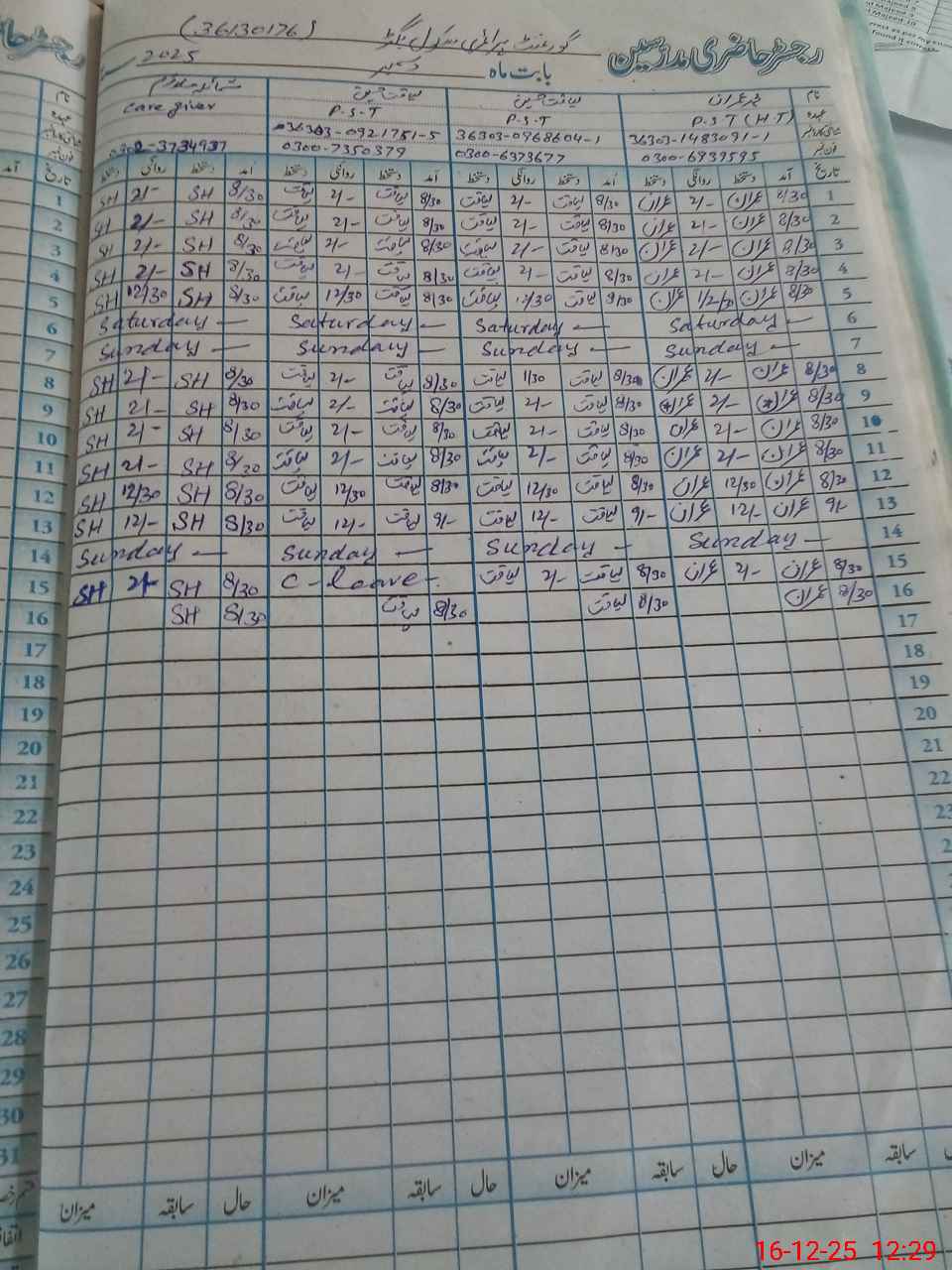 | Name: Mu**** Im**** Designation: (School Headmaster's/Headmistress's) PST/PTC/JV Phone/Cell Number: 03**** |