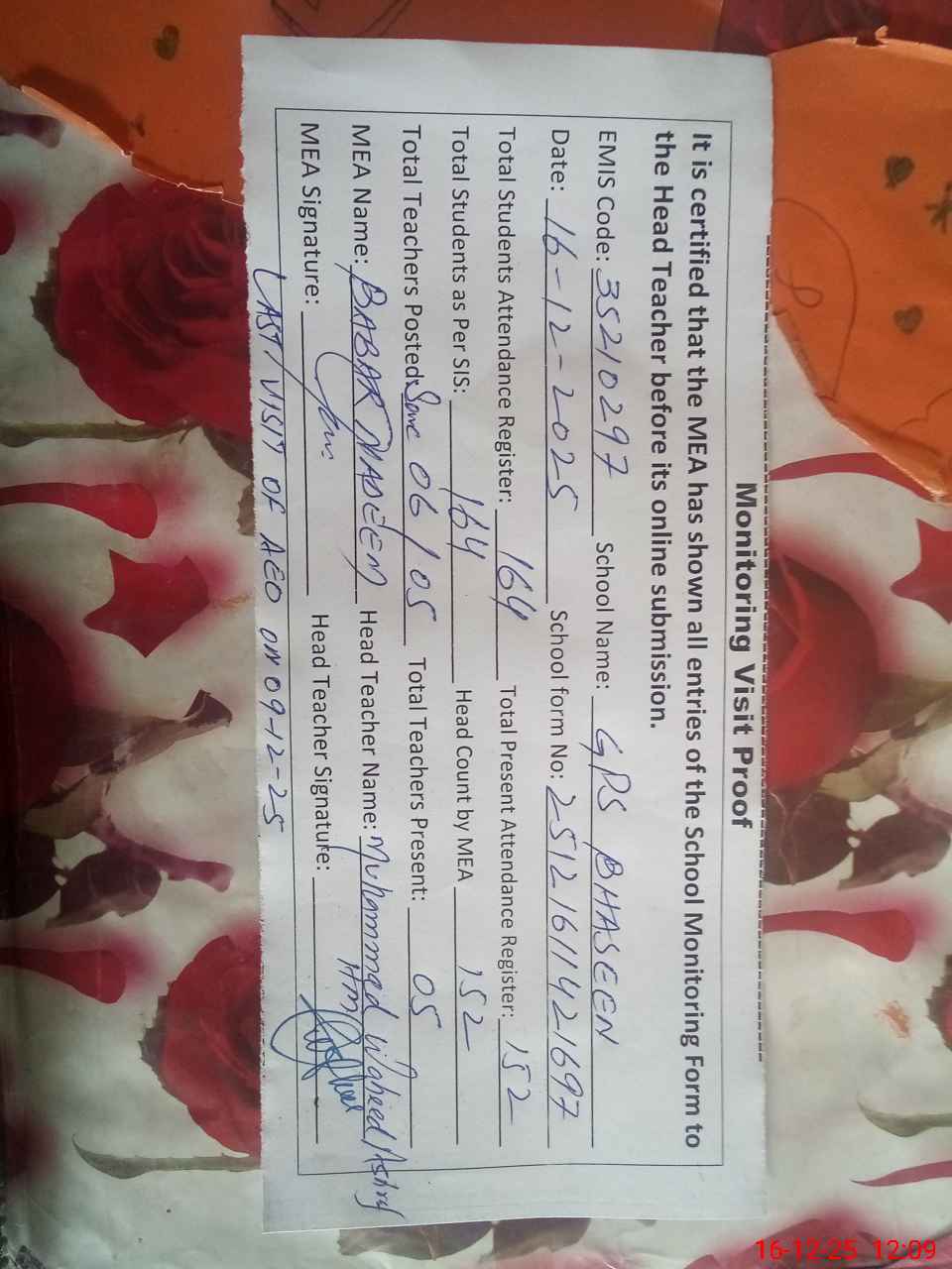 | EMIS Code: 35210297 | Name of School: GPS BHASEEN | |||