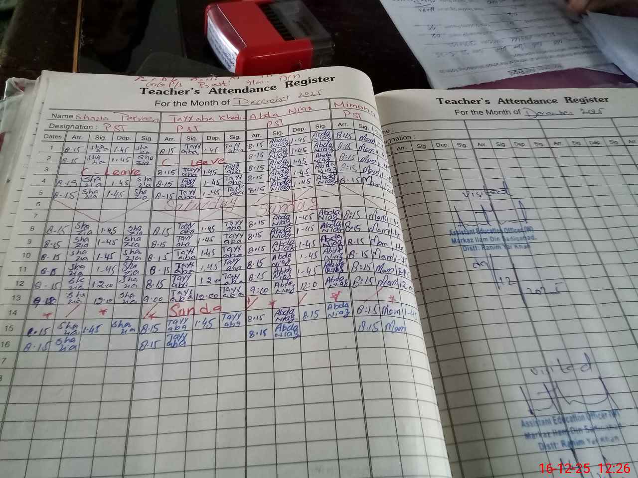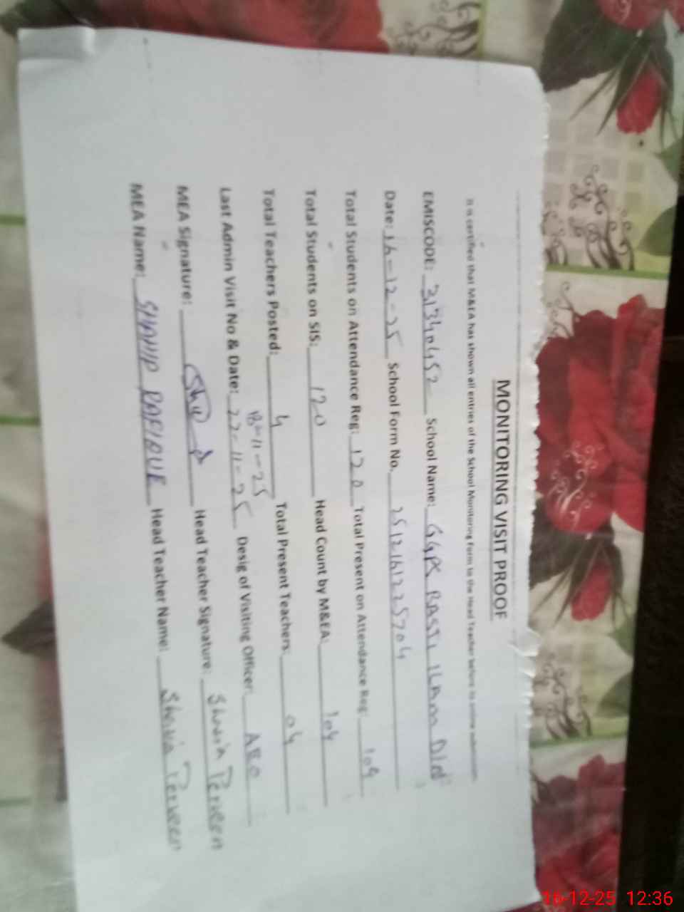 | Attendance Register | Head Teacher | MEA with School | Visit Proof |