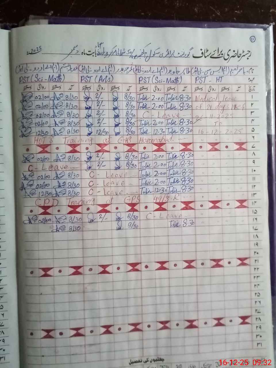 | Leave | Duty | Absent | Maternity | Medical | Ex- Pak |