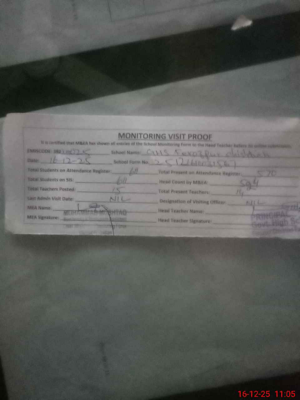 | EMIS Code: 39210025 | Name of School: GHS FEROZPUR CHISHTIAN | |||